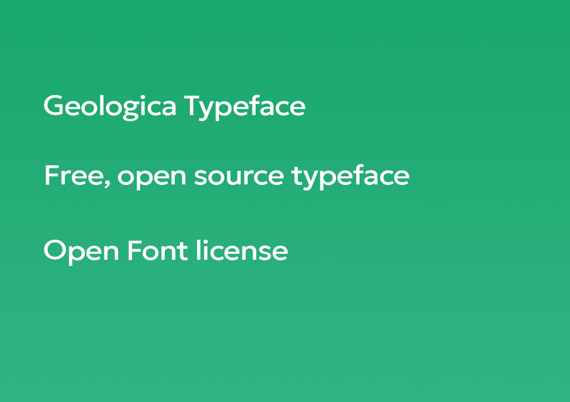 A free open source humanist, geometric font, the Geologica Typeface which has a clean and clear aesthetic. The font would be suitable for use on headlines, titles, display, text, writings, documents, posters and flyers. The font is free to use under the OFL Open Font License which allows the user to use, copy, merge, embed and modify copies of the typeface (subject to the terms of the OFL) and can be downloaded here.