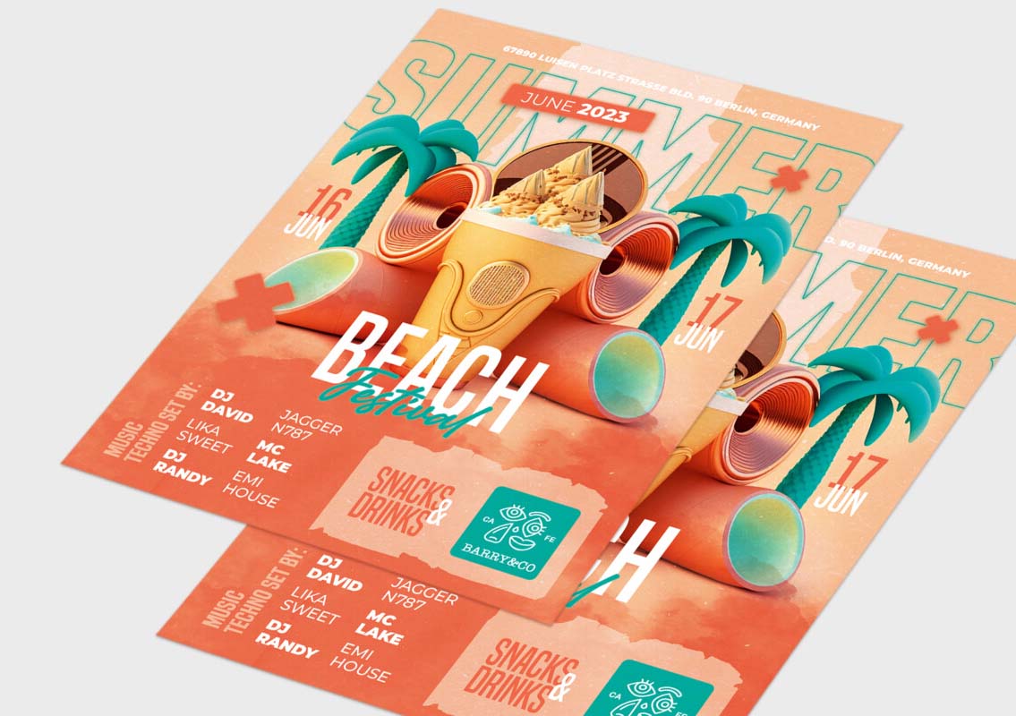 This PSD template is a high resolution summer beach, festival beer and music poster & flyer. The PSD mock-up has been created by free-psd-templates.com, it comes with a PSD, which is 300DPI for physical printing and is CMYK. You can also use these for social media posts and other social media here’s the free download page.
