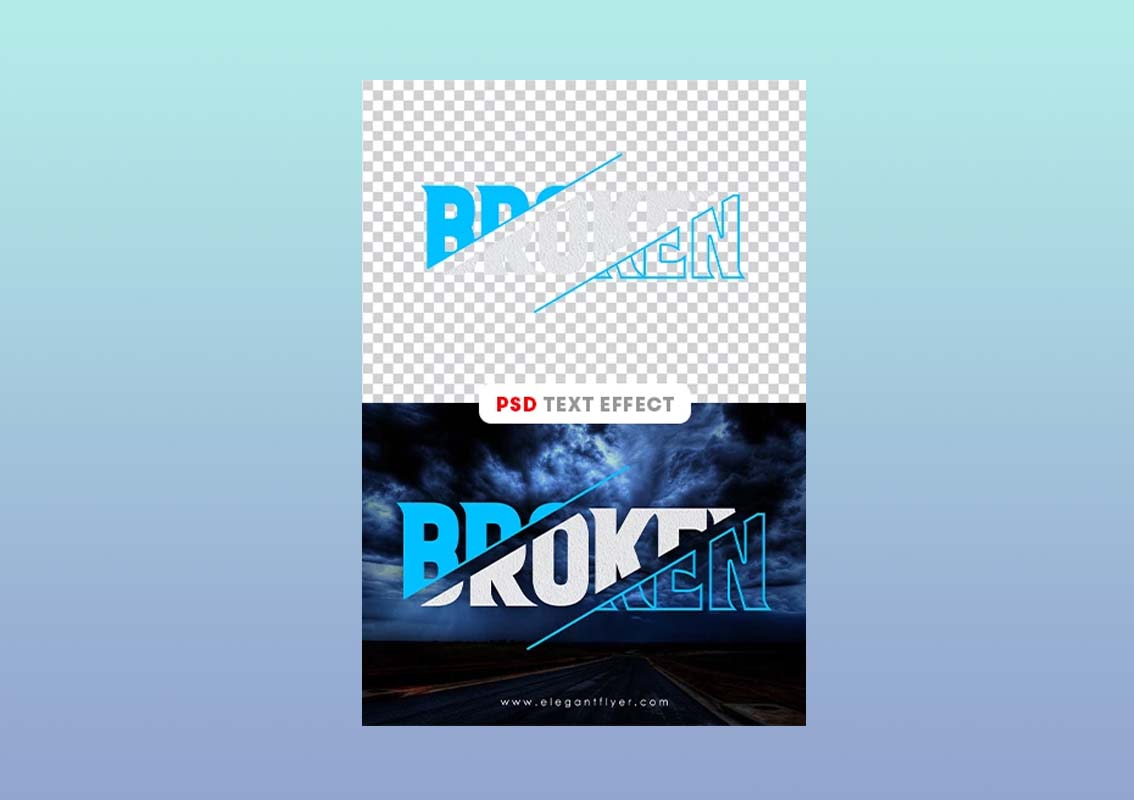 This photoshop PSD template is a high resolution broken shard, cut, split text effect PSD. The photoshop PSD mock-up has been created by elegantflyer.com, it comes with a PSD, which is 300DPI, 3000px by 2000px and is RGB. You can also use these for social media posts and other social media here’s the free download page. The file is suitable for personal and commercial use (with attribution), under the elegantflyer.com free license.