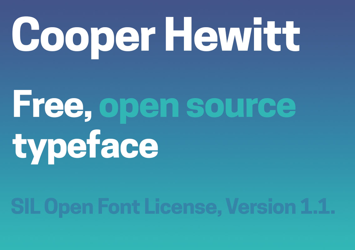 A free open source sans serif font, Cooper Hewitt, commissioned by Cooper Hewitt for the Smithsonian Design Museum. The font would be suitable for use on headlines, titles, text, documents, display, flyers & posters, websites, blogs, technical works and computer programs. The font is free to use under the OFL Open Font License which allows the user to use, copy, merge, embed and modify copies of the typeface (subject to the terms of the OFL) and can be downloaded here.