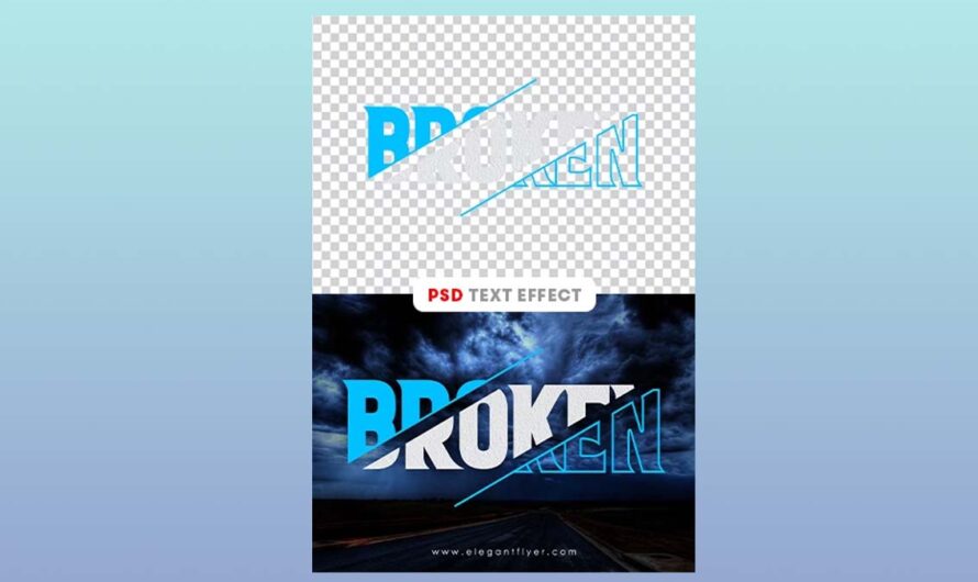 A free broken shard, cut, split text effect PSD for photoshop – mock-up template for download
