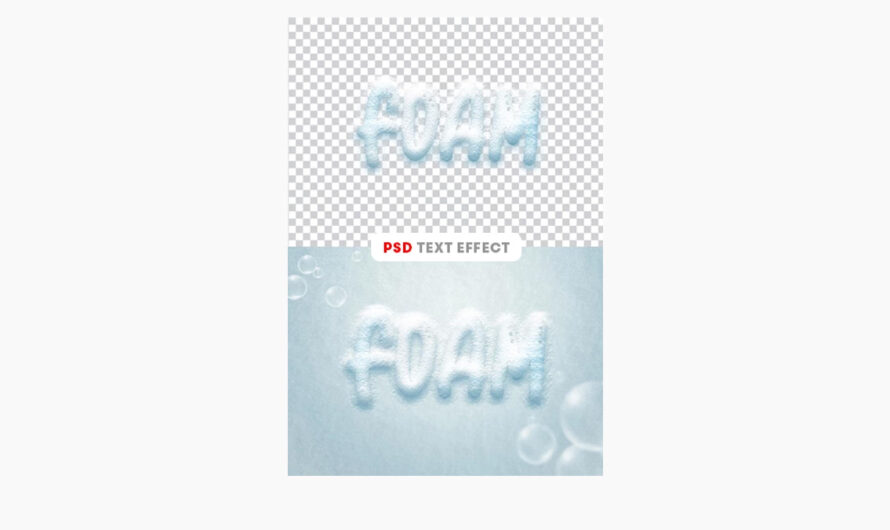 A free water foam bubbles bath and shower, foamy water, bath bubbles text effect PSD for photoshop – mock-up template for download
